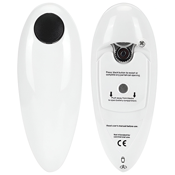 Само притиснете копче за да отворите конзерви од различни големини брзо и безбедно. Идеално за секого, вклучително и за лица со артритис или болки во рацете.