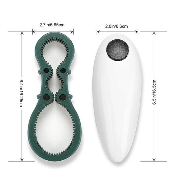Отвора без проблеми секоја тегла со притискање на копче! 🥫 Идеален за тегли од сите големини, овој електричен отворач за шишиња обезбедува глатки и безбедни рабови. Овој компактен и пренослив комплет вклучува автоматски отворач за конзерви и рачен отворач за шишиња. Безбеден и совршен за пикници и кујни.