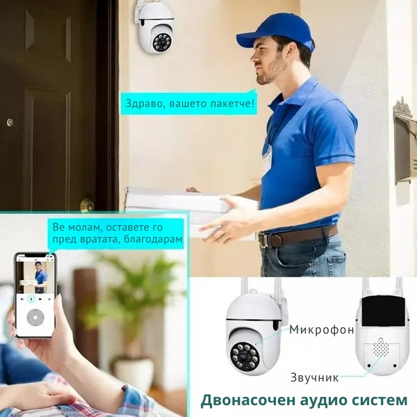 Корисниот вграден микрофон на безжичната безбедносна камера ви овозможува да зборувате преку нашата апликација. Аудио во два правци ви овозможува да комуницирате со луѓето, а алармот за движење ви помага да се ослободите од непожелни лица или животни.