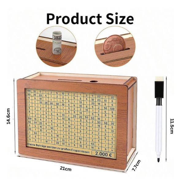 Поставете ја вашата COINSAVE касичка за неколку минути! Вклучениот маркер и ливчиња за заштеда го олеснуваат персонализирањето. Таа е со елегантен дизајн што беспрекорно се вклопува во вашиот дом или канцеларија.