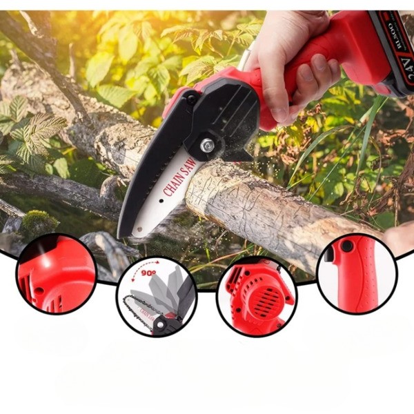 Оваа батериска пила е опремена со квалитетен синџир кој поминал сложен процес за да може да сече без проблеми. Исто така, користи мотор од бакар кој е многу моќен. Ефикасноста на сечењето е поголема и побрза.
