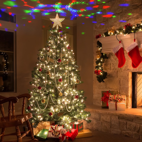 Создава магична атмосфера со анимирани 3D проекции што танцуваат над вашата елка.