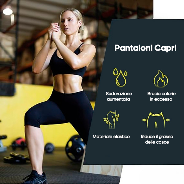 Добијте посвиткана силуета со термичкиот моделирачки елек и капри панталоните. Ефикасно стега стомакот и крие масните наслаги за совршена фигура.