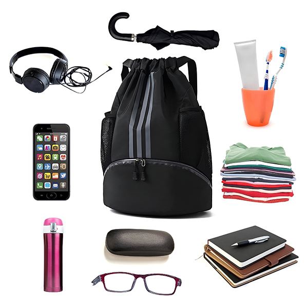 Големиот простор со јажиња е совршен за чување на облека за теретана, чевли, пешкири и шише вода. Има специфично место за сè што ви е потребно за ефикасна тренинг сесија. Нема повеќе да пребарувате низ вашата торба: сè има свое место.