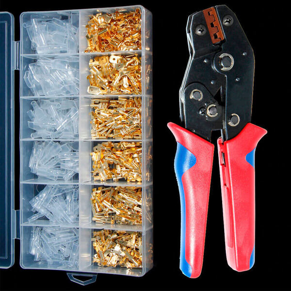 Сетот вклучува машки и женски конектори во три големини (2,8, 4,8, 6,3 mm).