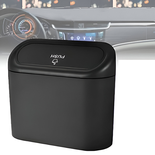 Опремен со сигурен капак, спречува мириси и задржува отпадоците внатре. Неговиот дизајн отпорен на пролевање гарантира дека нема нечистотии или пролевања, одржувајќи хигиенична средина во автомобилот.