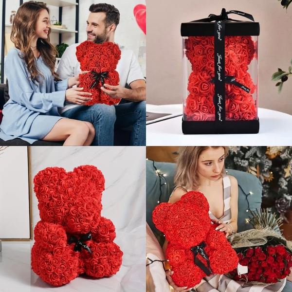🎁 Изненадете ја со романтичен мечок направен од неувенливи рози.