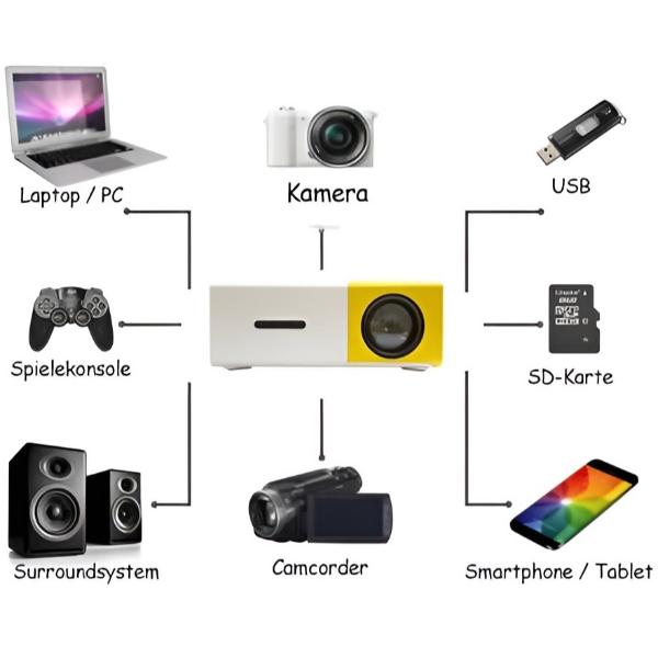 Благодарение на повеќе порти како USB, HDMI и AV, овој проектор гарантира забава, без разлика на уредот што го користите.