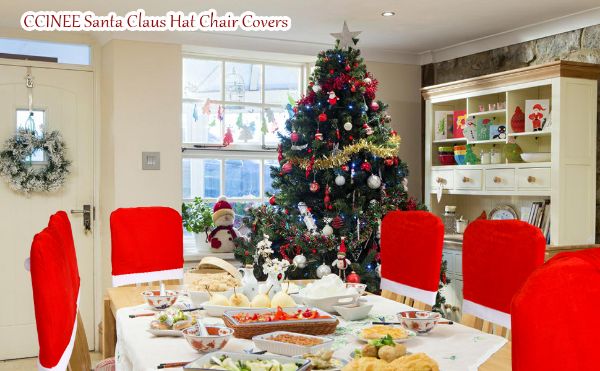 Навлаките за столови SANTASEAT се дизајнирани како капи на Дедо Мраз, наменети за украсување на наслоните на столовите со божиќна тематика во трпезариите.