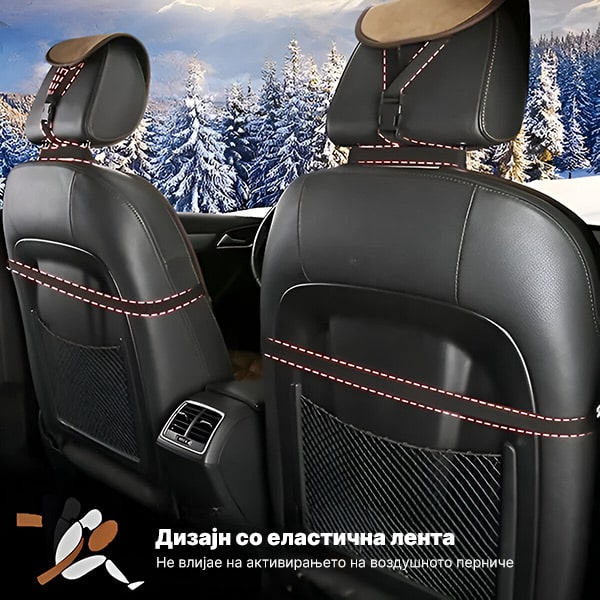 Достапна во елегантна црна или беж боја, оваа прекривка не само што додава удобност, туку и го подобрува изгледот на интериерот на автомобилот.