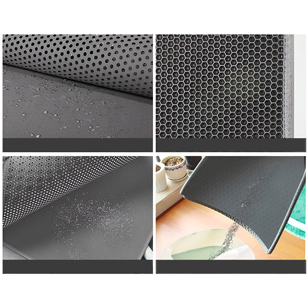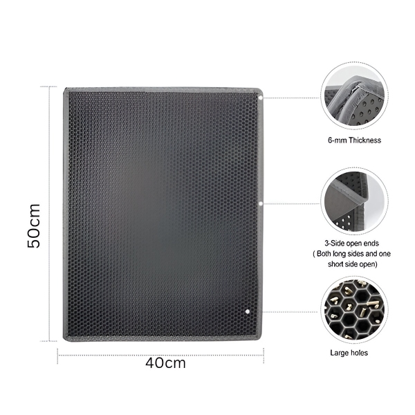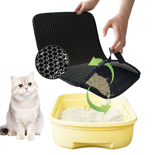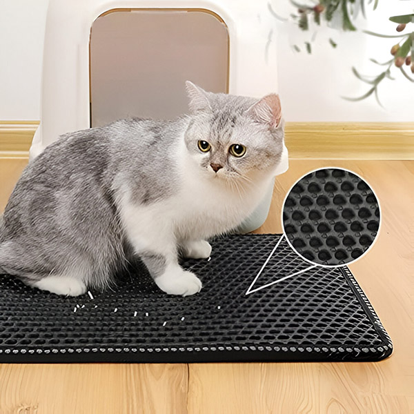 Нема повеќе отпад расфрлан низ домот. Оваа иновативна подлога со дизајн на пчелина мрежа на врвот фаќа песок низ мали дупки. Кога мачката излегува од кутијата, сè песок и нечистотија залепени за шепите се фаќаат и се лизгаат во долниот слој на подлогата. Така може лесно да се врати во кутијата за отпадоци, одржувајќи го подот беспрекорен.