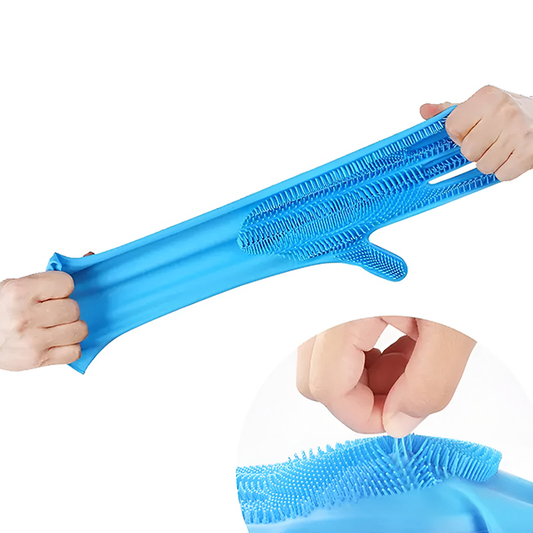 Продолжениот дел на ракавицата околу зглобот спречува откачување за време на употреба, штитејќи ги ракавите од нечистотија и рацете од гребења од мали животни. Дизајнот со пет прсти овозможува чистење на секој агол на вашето домашно милениче.