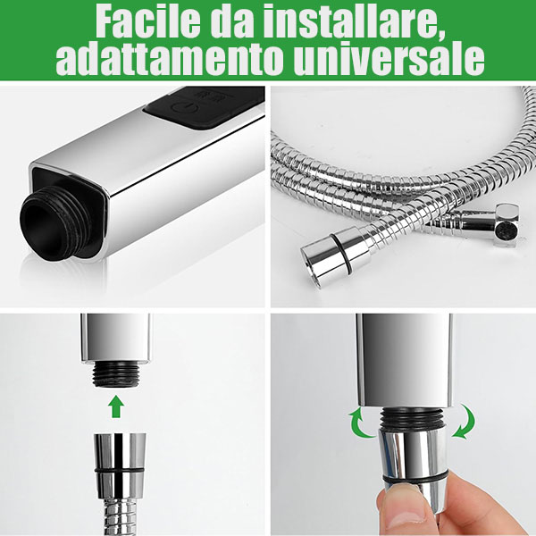 Се прилагодува на секој стандарден црево за неколку секунди—без алатки, без проблеми. Иновативните силиконски дизни спречуваат натрупување на каменец, одржувајќи го протокот на вода силен и константен.